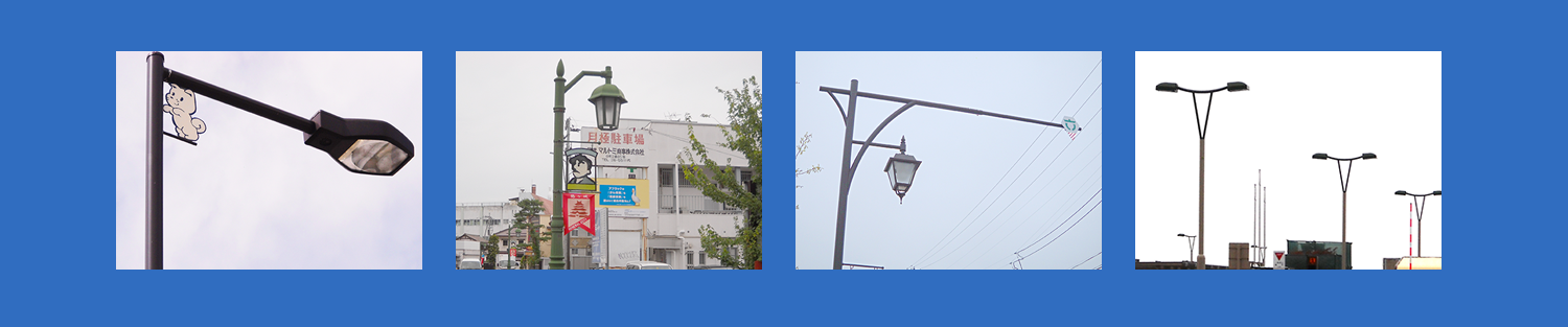 デザイン柱は、照明柱にさまざまなデザイン装飾を施した支柱です。駅前や商業施設向けに、「街の顔」としての景観を形成するため、デザイン性を備えた照明柱を製造します。